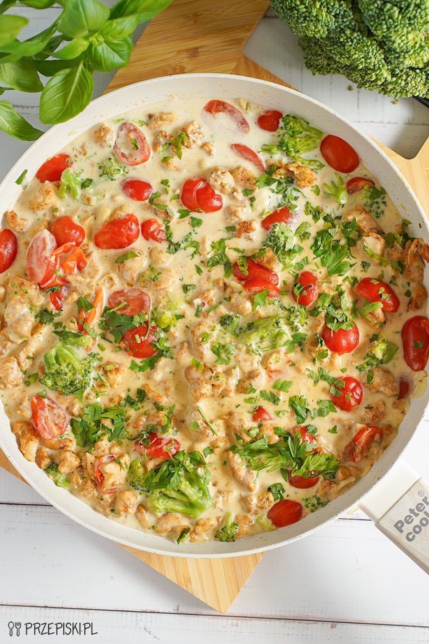 Kurczak w kremowym sosie brokułowym z pomidorkami – ekspresowy obiad pełen koloru i smaku
