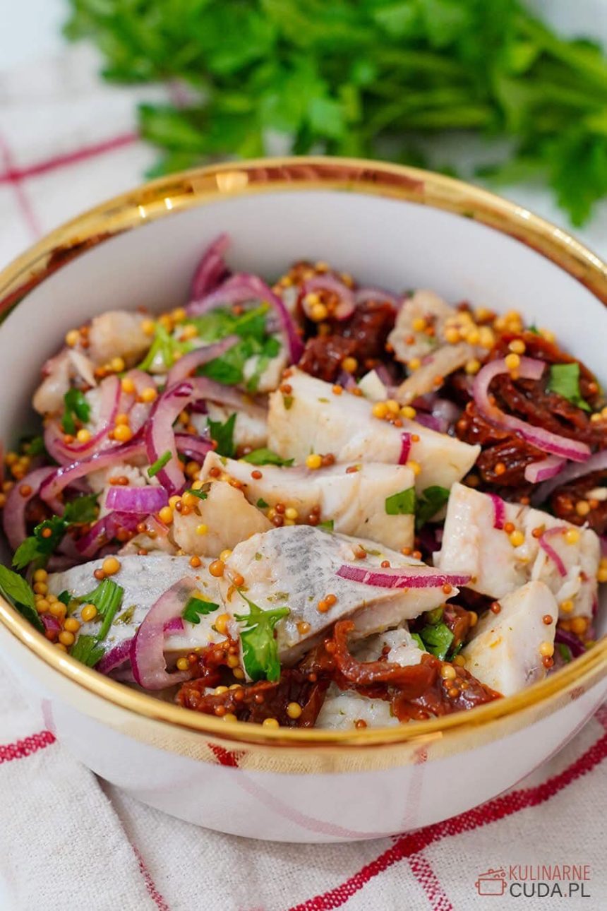 Aromatyczne śledzie z suszonymi pomidorami i musztardą francuską – przepis pełen smaku
