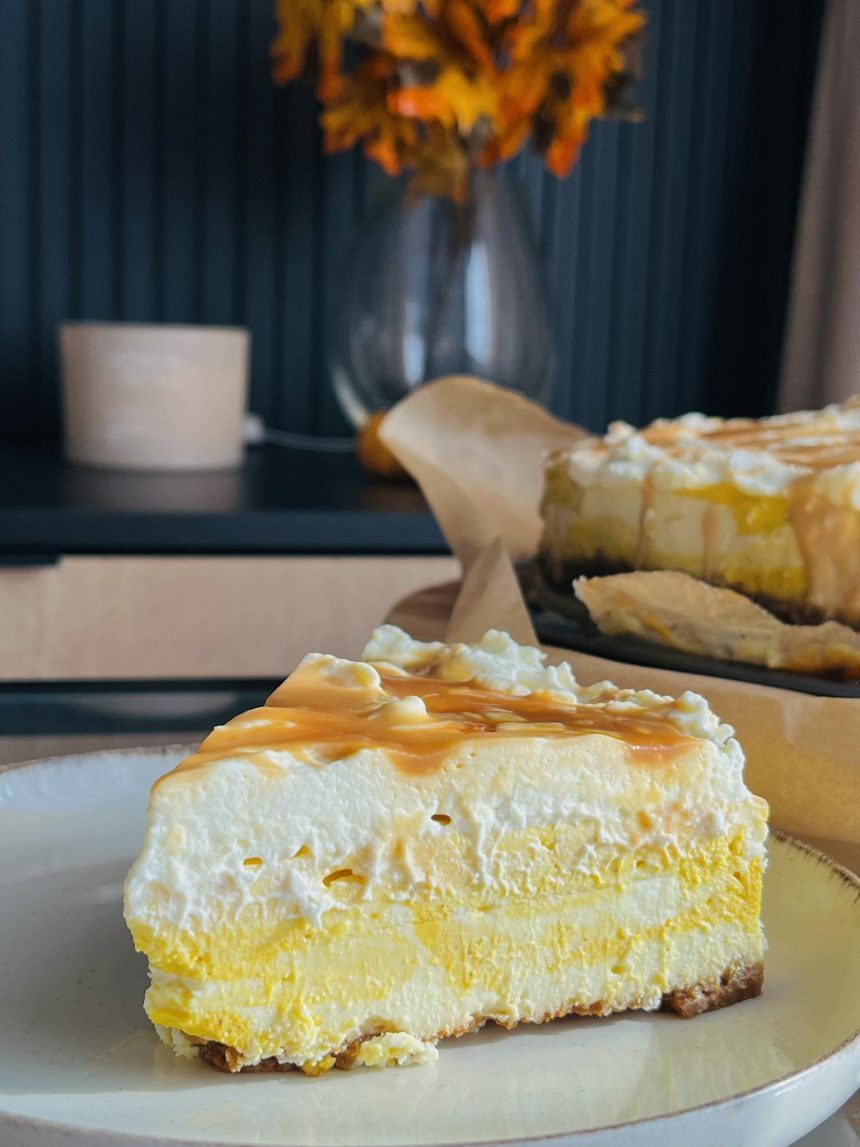 Dwukolorowy Sernik Dyniowy na Korzennym Spodzie z Kremem Mascarpone i Solonym Karmelem — Przepis Idealny na Jesień
