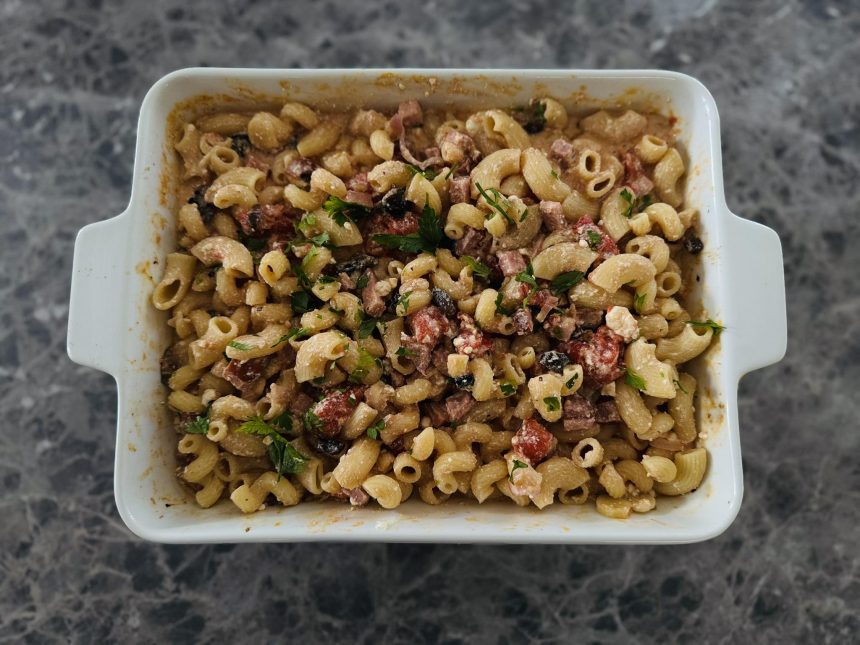 Zapiekany makaron z fetą i pomidorkami koktajlowymi — szybki i smakowity obiad
