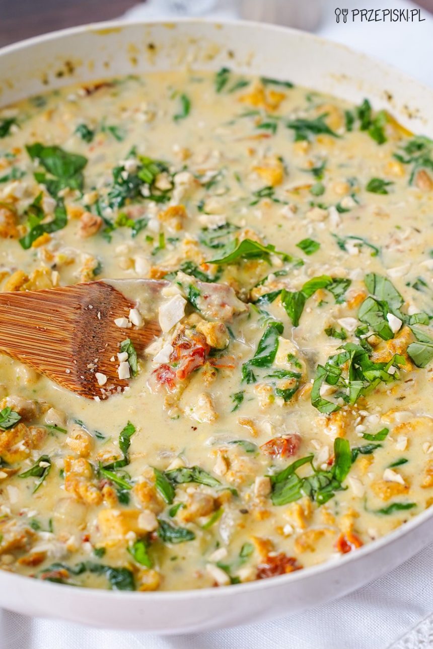 Kurczak w kremowym sosie gorgonzola z parmezanem i szpinakiem – ekspresowy przepis pełen smaku