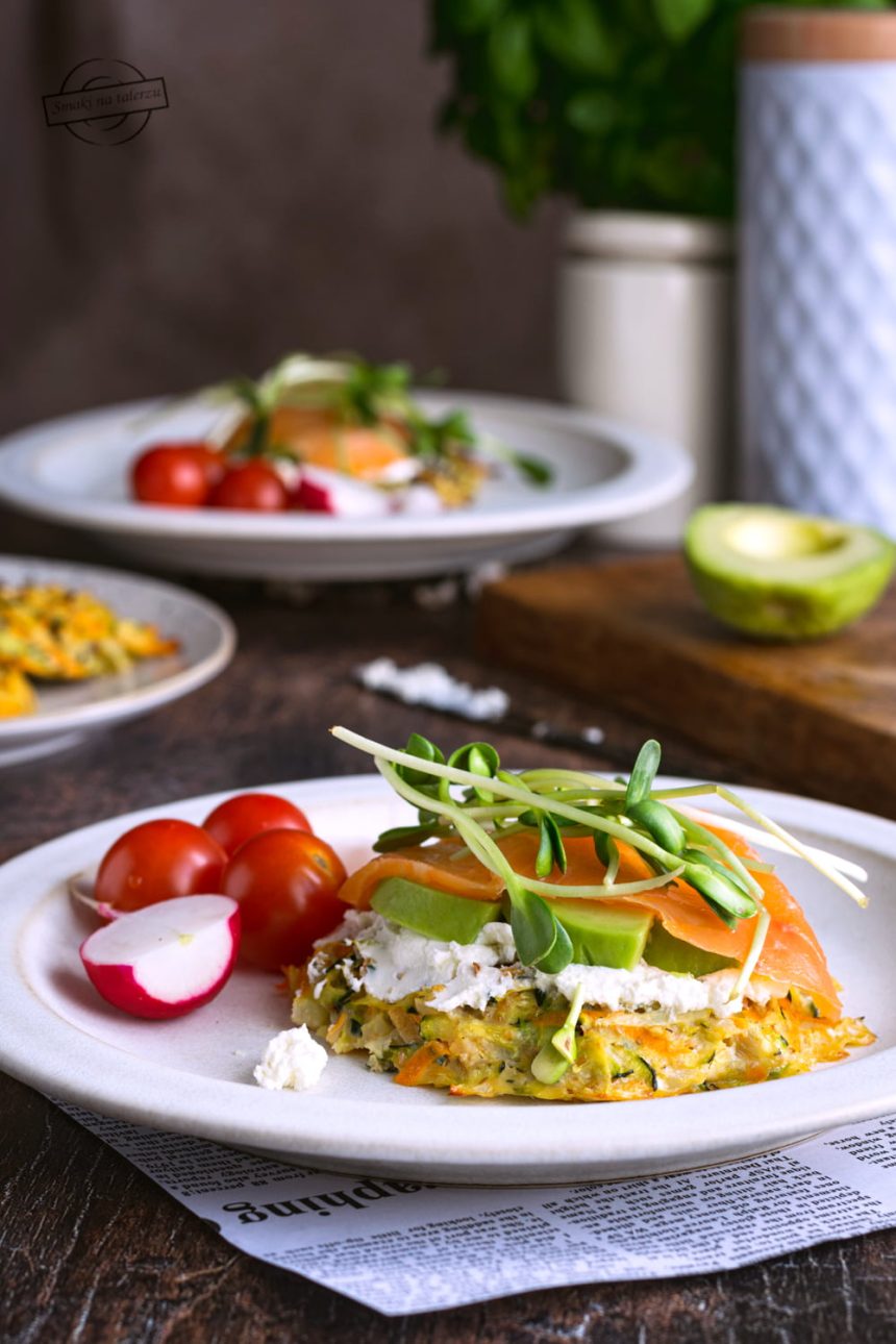 Wyjątkowe placki warzywne z kremowym twarożkiem i delikatnym łososiem – zdrowa uczta na talerzu