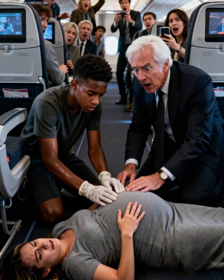 Czarnoskóry chłopiec ratuje ciężarną żonę milionera podczas lotu. To, o co prosił, doprowadziło milionera do płaczu…