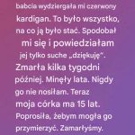 W końcu, ze łzami w oczach, Tyler skinęła głową. Dobrze, wyszeptała. Jeśli to uratuje prababcię Helen, dam ci pieniądze. Ulga, która zalała twarze moich rodziców, była natychmiastowa i z perspektywy czasu wiele mówiąca. Mocno uściskali Tyler, chwaląc ją za to, że jest tak dobrą, bezinteresowną osobą.