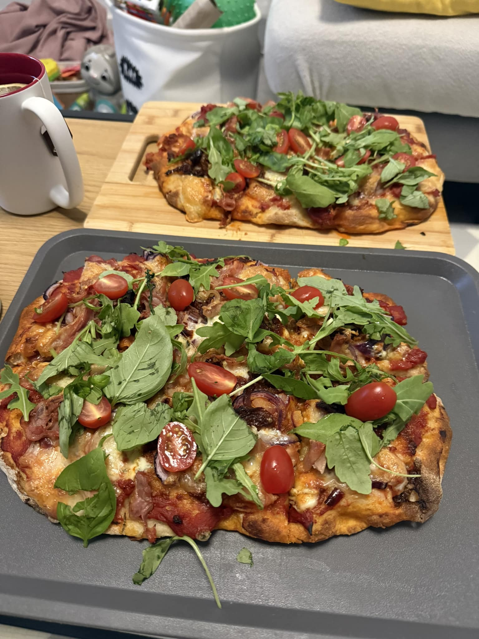 Ulubione dodatki: szynka parmeńska, pieczarki, rukola, suszone pomidory
