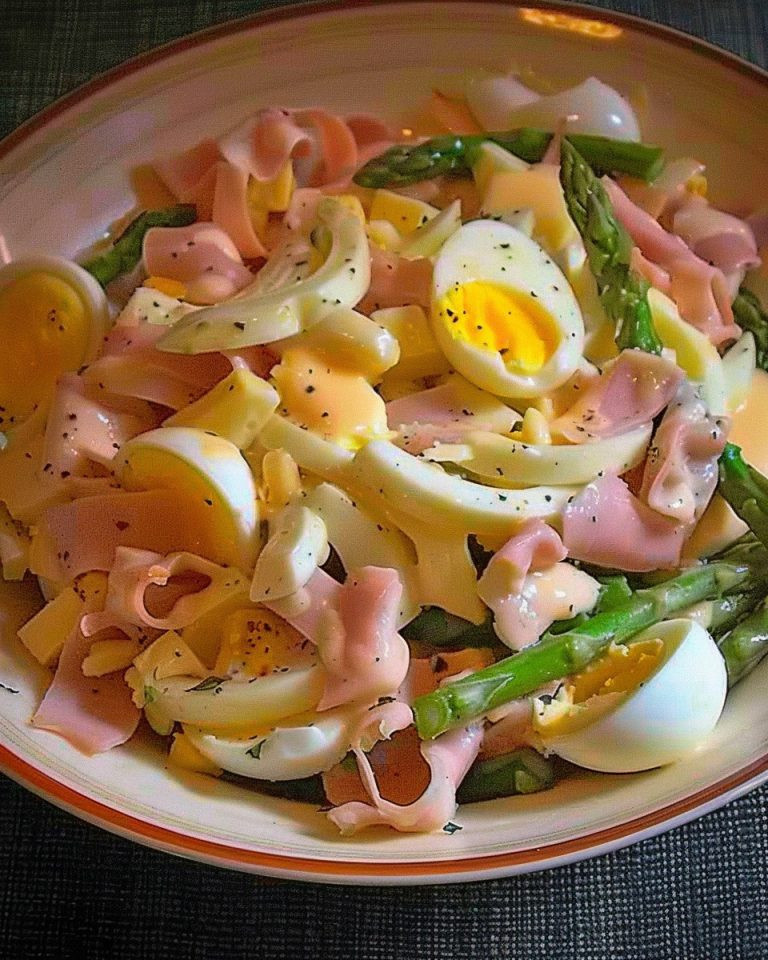 250 g gotowanej szynki, ostrej, pokrojonej w nieco grubsze plasterki